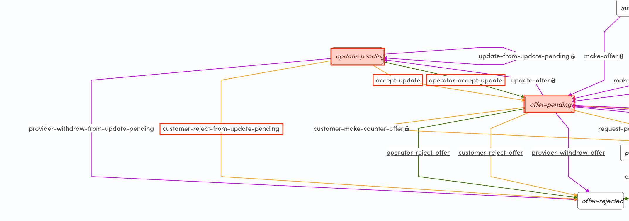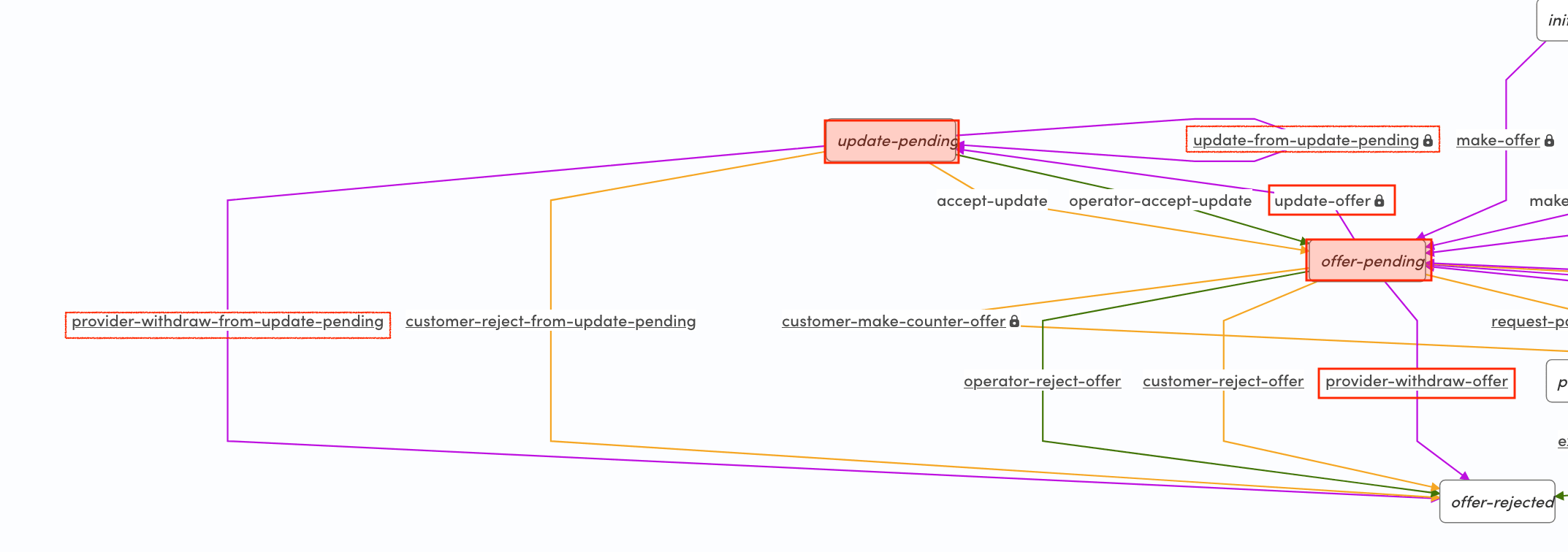 From state/offer-pending, there are multiple paths for both the customer and the provider.
